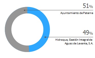 Aigües Municipals de Paterna, SA es una empresa mixta  participada en un 51% por el Ayuntamiento de Paterna y en un 49% por Hidraqua, Gestión Integral de Aguas de Levante, S.A.